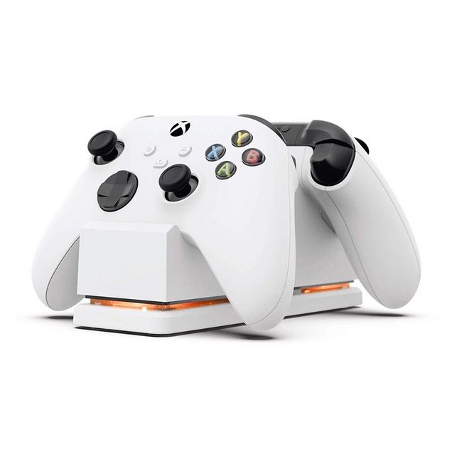 Licenciada oficialmente pela Xbox, a estação de carregamento do Xbox One elimina o custo de substituição de baterias. Mantenha os controladores sem fio do Xbox One totalmente carregados e prontos para o jogo! O nível da bateria do controlador é indicado na tela, portanto, não há necessidade de desviar os olhos da ação. Cada estação de carregamento inclui 2 portas de bateria recarregáveis e 2 baterias recarregáveis equipadas com horas de jogo. Para carregar, basta clicar no controlador na estação de carregamento e ver as barras de luz LED que indicam o nível de carga. Quando estiver totalmente carregado, clique para armazenar. Concentre-se no jogo e não na carga.
